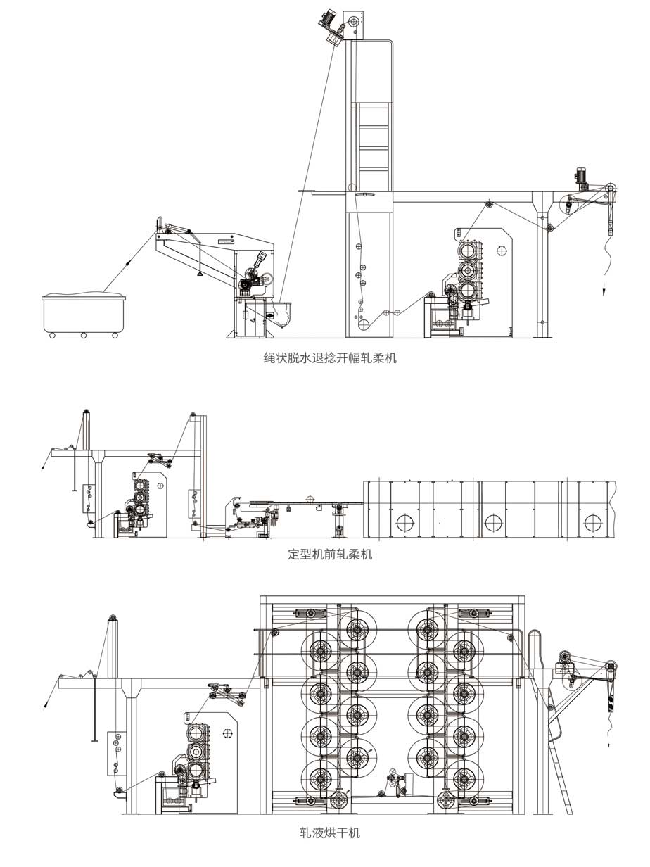 本產(chǎn)品可作為聯(lián)合機(jī)單元,主要用于純棉,化纖及混紡織物的浸軋助劑、軋水等工藝,并使其能達(dá)到30%~40%的軋余率,縮短后續(xù)的烘干定型時間,降低蒸汽和天然氣的能耗,節(jié)約生產(chǎn)成本,提高了生產(chǎn)效率。